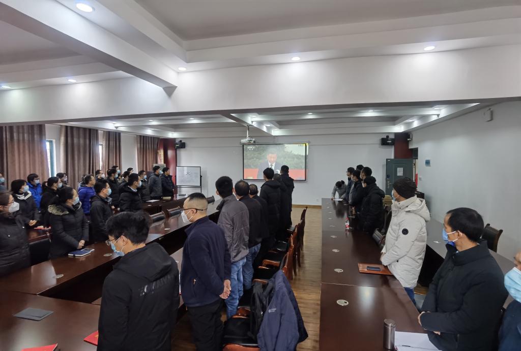 国旗半垂、举国同悲。上午10时整,追悼大会开始。参加追悼大会的全体人员身着黑衣,怀着悲痛的心情,肃立默哀3分钟,表达对江泽民同志的殷殷追思,深切缅怀江泽民同志的光辉业绩。随后,大家认真收听收看了习近平总书记在江泽民同志追悼大会上致悼词,向江泽民同志深深三鞠躬。