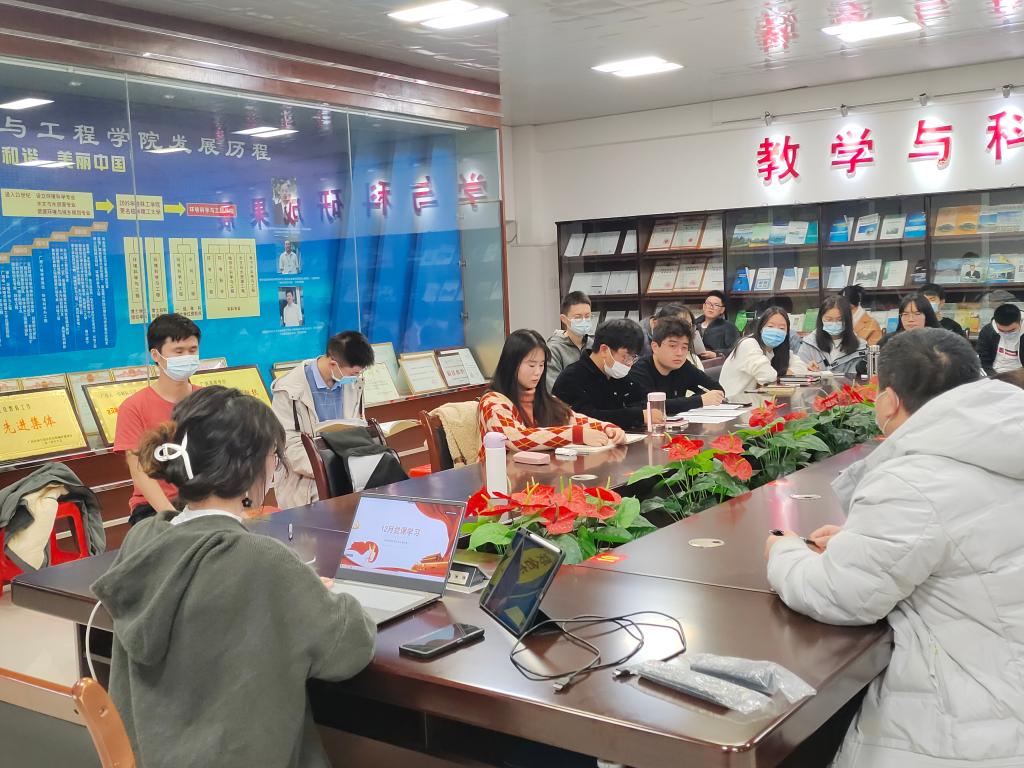 为了进一步加强支部成员思想理论教育,我院研究生第三党支部于12月8日中午在雁山校区12310会议室召开“以中国式现代化全面推进中华民族伟大复兴”的主题党课,支部书记及支部全体党员同志参加本次活动,本次党课由支部副书记主持。