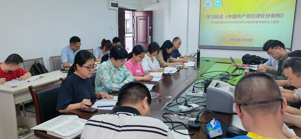 为进一步加强党风廉政建设,提升支部成员的政治纪律意识和政治规矩意识,4月30日下午,党支部组织全体党员在屏风校区科创中心519会议室开展了《中国共产党纪律处分条例》(以下简称《条例》)专题学习活动,本次活动由支部书记朱宗强同志主持。