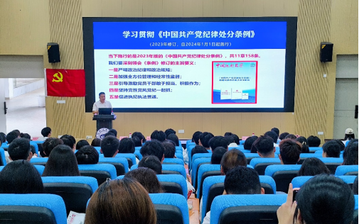 开班式后,环境学院党委负责人以《以更高标准学好用好《条例》以严明的纪律,做德智体美劳全面发展的时代新人》为主题讲授首课。他结合党史案例,阐释党的纪律建设重大意义,强调学员要筑牢信仰根基,将纪律意识内化于心、外化于行,努力成为德才兼备的新时代青年。