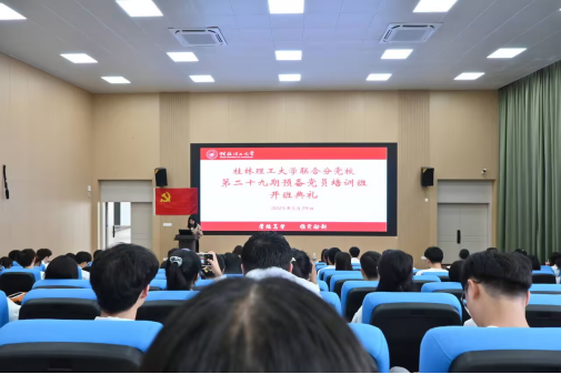 2025年5月29日,beat365手机版官网入口,物理与电子信息工程学院、数学与统计学院、艺术学院、商学院联合分党校第二十九期预备党员培训班暨第一讲在雁山校区03316报告厅顺利举行。五个学院党组织代表、教员及全体参训预备党员参加此次会议,本次会议由物理与电子信息工程学院党校教务员夏琳主持。
