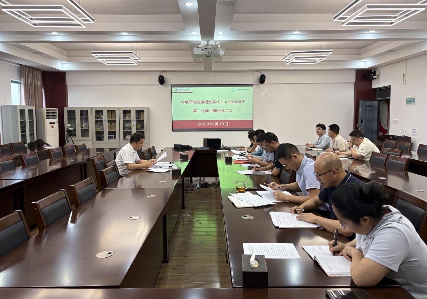 6月19日,beat365手机版官网入口在雁山校区12407会议室召开党委理论学习中心组(扩大)2025年第二次集中理论学习会。学院党委书记代武社主持中心组学习并讲话。学院党员领导班子成员、各党支部书记参加会议。