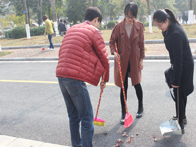 在劳动过程中,大家合理的分工合作进行打扫校道、捡拾落叶和花坛内的垃圾以及清除垃圾桶内的垃圾。经过大家的一番努力,萃华楼周围被清扫得干干净净的。虽然这个义务劳动又脏又累,但是大家都非常认真努力,而且对自己的劳动成果感到非常满意。