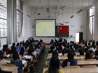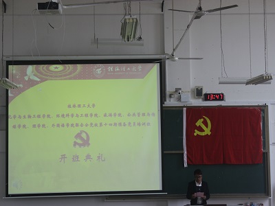 11月14日,beat365手机版官网入口、化学与生物工程学院、旅游学院、公共管理与传媒学院、理学院、外国语学院联合分党校第十四期预备党员培训班开班典礼在雁山校区06206教室隆重举行。化学与生物工程学院党校副校长、党委副书记陶剑飞老师、旅游学院党校副校长、党委副书记叶婷老师、理学院党校副校长、党委副书记孙巍老师、我院党校教务员夏晴老师以及其他各二级党校教务员出席本次开班典礼,同时我院全体学生预备党员参加了本次开班典礼。开班典礼由化学与生物工程学院党校教务员陈文甫老师主持。