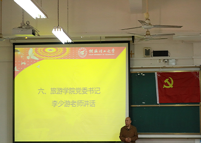 2018年4月9日中午,环境学院与旅游学院联合分党校第十八期入党积极分子培训班结业典礼在06409教室举行。旅游与风景园林学院党委书记李少游老师、我院党校教务员夏晴老师、旅游与风景园林学院党校教务员唐玉福老师出席结业典礼,本次培训班全体入党积极分子参加了结业典礼。本次仪式由旅游与风景园林学院党校教务员唐玉福老师主持。