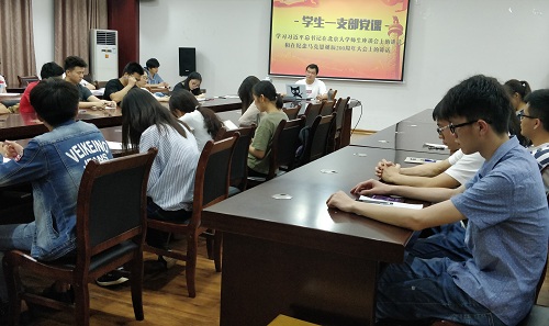 为践行两学一做,坚持和发展马克思主义,5月13日晚21点,我院学生一支部在雁山萃华楼12407会议室召开党课学习习近平总书记在北京大学师生座谈会上的讲话和纪念马克思诞辰200周年大会上的讲话,会议由支部书记黄兆凡老师主持,支部党员和拟发展对象听党课。
