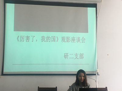 为深入学习贯彻党的十九大精神,推进“两学一做”学习教育常态化、制度化,进一步激发我院学生党员的爱国热情, 5月4日,我院研究生第二党支部在雁山校区九栋玻璃房通过在线、实地两种形式组织观看了电影《厉害了,我的国》。会议由党支部副书记王蓝青主持。
