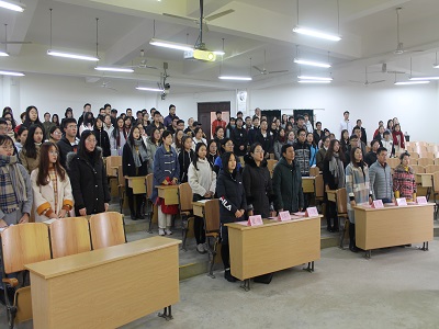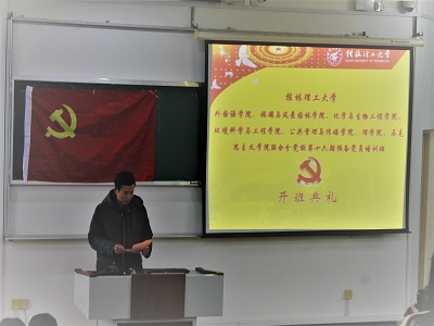 2018年12月13日,beat365手机版官网入口、外国语学院、旅游与风景园林学院、化学与生物工程学院、公共管理学院与传媒学院、马克思主义学院联合分党校第16期预备党员培训班开班典礼在雁山校区05308顺利举行。外国语学院党校校长、党委书记陈文乾老师,各分党校教务员参加了本次开班典礼。