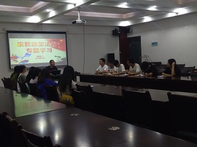 2019年6月27日19点,beat365手机版官网入口研究生四支部在12415进行宗教政策法规学习,学习内容主要围绕“习近平总书记关于宗教工作重要论述”、“宗教知识”和“宗教工作应知应会基本知识”三个方面。课上,支部在场的各个党员通过宣读的形式进行学习,收获良多。
