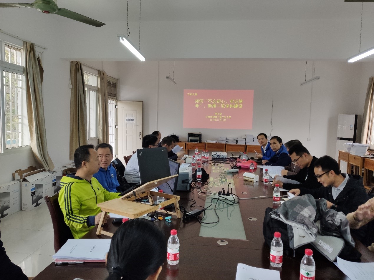 在“不忘初心、牢记使命”主题教育中(9-11月),经过多次支部党员大会的学习和研讨,通过调研得出本支部在师资队伍建设、学科建设、人才培养质量、科学研究水平、社会服务与学科声誉等存在的15个主要问题。为了解决这些问题,本次会议针对每一个问题讨论可行的整改措施,并形成了主题教育活动报告,有利于推动我院环境科学与工程一流学科建设。
