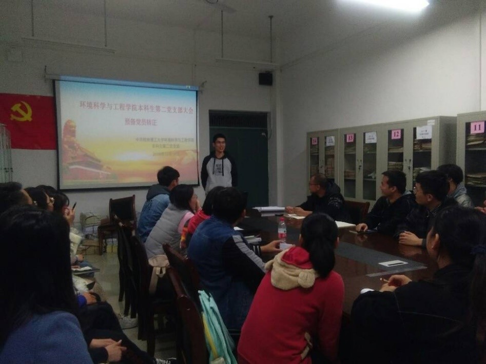 2019年12月18日,我院本科生第二党支部于雁山校区萃华楼12415室召开了2019年预备党员转正大会,唐源江书记主持会议,支部全体党员同志参会。