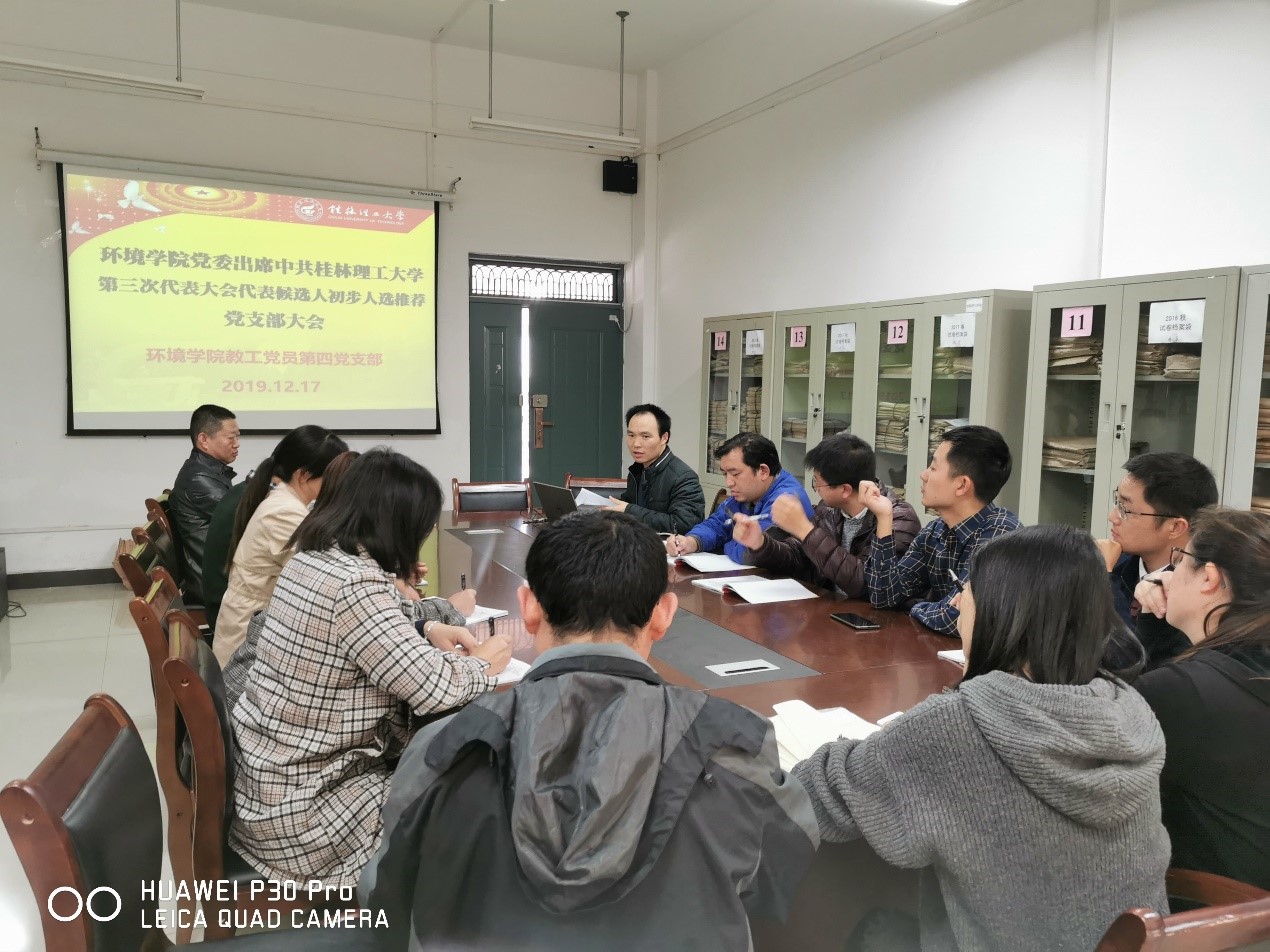 2019年12月17日下午,教工党员第四支部在雁山校区12414召开了党支部会议,全体在校的教工党员出席了本次会议,会议由支部书记梁延鹏老师主持。
