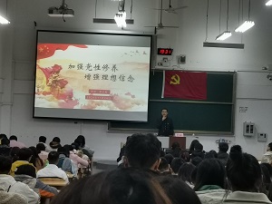 罗义淞副书记从以下四部分对《加强党性修养 增强理想信念》进行了全面介绍:第一,强调理想信念至关重要。他引用习近平总书记讲话:“理想信念就是共产党人精神上的‘钙’,没有理想信念,理想信念不坚定,精神上就会‘缺钙’,就会得‘软骨病’。”阐释了理想信念的重要性。第二,科学分析了党性的内涵与基本要求。他认为共产党员的党性,就是党员对党的性质的认同和遵循,要做到在党爱党、在党言党、在党优党、在党为党。第三,对学生党员为什么要加强党性修养做了解读。主要有:应对当今时代课题的需要、党的事业薪火相传的需要、树立科学的理想、信念和信仰的重要保证等等。第四,对学生党员如何加强党性修养做了说明。