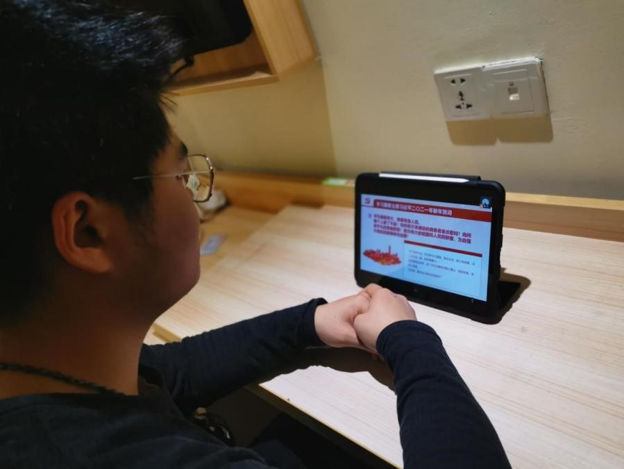 本次会议主要学习国家主席习近平二〇二一年新年贺词。首先,冉浩学同志带领大家观看习近平主席新年贺词的视频,让各位通知重温习近平同志在新年贺词中的发言。然后,冉浩学同志着重指出新年贺词中的三句话:一是平凡铸就伟大,英雄来自人民,结合90后护士小姐姐,剃光头发、穿上纸尿裤,冲上抗疫第一线,和死神搏斗的事例,让我们重温疫情感人时刻;二是艰难方显勇毅,磨砺始得玉成,在脱贫攻坚关键期,广西大石山区党员干部带领群众瞄准基础设施、公共服务、产业发展等短板弱项精准发力、集中攻坚,实施挂牌作战,交出了优秀答卷;三是征途漫漫,惟有奋斗,2021年是中国共产党百年华诞,百年征程波澜壮阔,百年初心历久弥坚,胸怀千秋伟业,恰是百年风华。