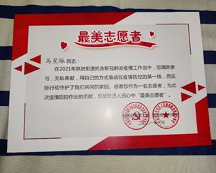 荣获“最美志愿者”称号