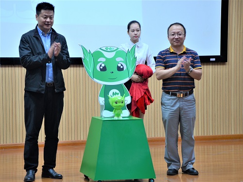 悦享生态文明,绿动美丽桂工。精彩的拉拉队表演“绿动桂工”拉开活动帷幕,现场观看了“环保春天行”系列活动的视频回顾、环保创新服装展示、《生态文明之歌》合唱表演、《今天我们这样爱国》朗诵。学生工作部部长张成龙和学院党委书记为“绿色校园”卡通形象大使--“环环”揭晓。它满载着桂工师生的深情与厚望,凝聚着桂林山水的灵秀与神韵,象征着自然,绿色和健康的生命力。校团委书记周国桥和学院副院长(主持工作)游少鸿把象征绿色,健康的环保袋发放给同学们,把环保精神“袋袋相传”。随后,学生代表发表环保倡议,呼吁大家从身边小事做起,在垃圾分类和环境保护方面贡献自己的力量。