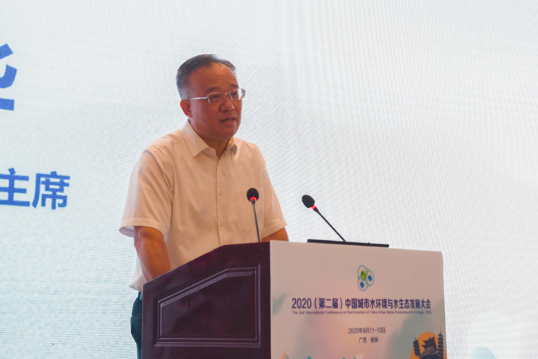 金秋九月,丹桂飘香,八桂大地,智者云集。9月12日上午,2020(第二届)中国城市水环境与水生态发展大会在桂林顺利开幕。广西壮族自治区人民政府副主席黄俊华,中国工程院院士、中国城市科学研究会水环境与水生态分会会长、我校名誉校长曲久辉,中国科学院院士袁道先,中国工程院院士彭永臻、徐祖信、任洪强,自治区人民政府副秘书长唐宁,自治区科技厅党组书记、厅长曹坤华,广西科学技术协会党组书记、副主席纳翔,自治区教育厅副厅长李清先,桂林市委副书记、秘书长赵仲华,我校校长解庆林、副校长王敦球等领导和嘉宾出席开幕式。来自政府有关部门、水分会委员代表、团体会员单位代表、个人会员代表以及全国各地从事水务工作的专家、学者、工程技术人员及企业家等参加大会。会议由中国城市科学研究会第六届理事会秘书长、水分会副会长兼秘书长、清华大学环境学院教授余刚主持。