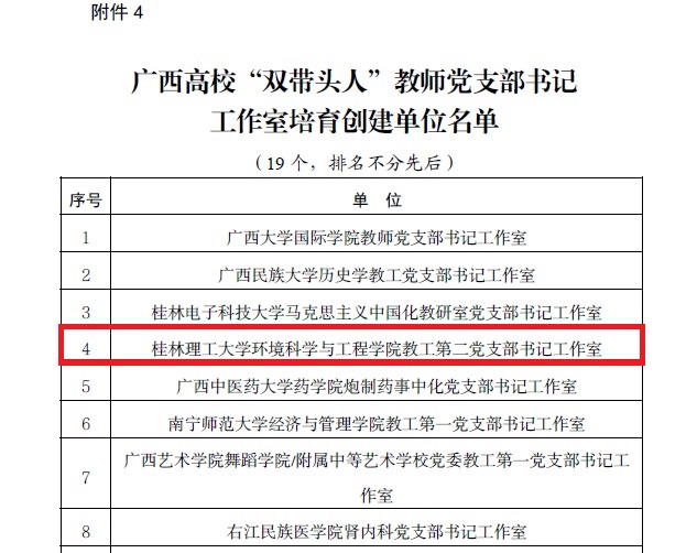 广西高校“双带头人”教师党支部书记工作室培育创建单位名单截图