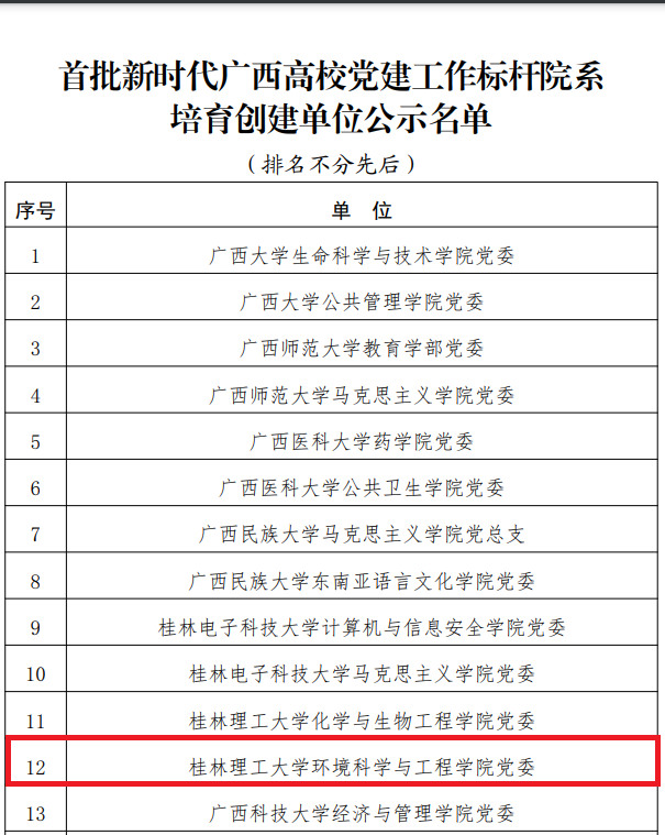 首批新时代广西高校党建工作标杆院系培育创建单位名单截图